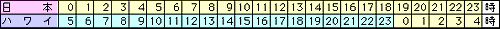 日本とハワイの時差は19時間。ハワイの方が日本より19時間遅いのだ。例えばハワイの夕方5時が日本の翌日の昼の12時になる。 |